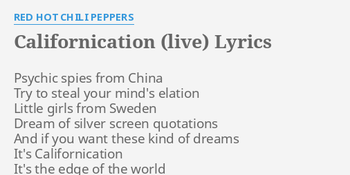 Red Hot Chili Peppers Californication Lyrics Red Hot Chili